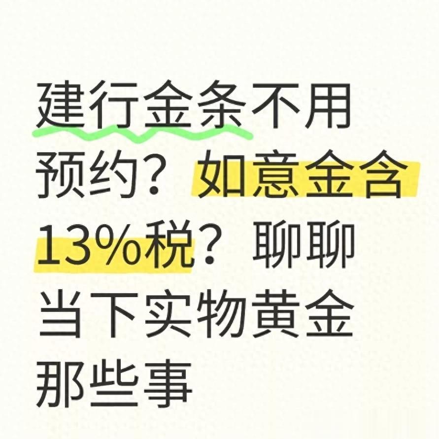 最近逛黄金交流群,总能看到各种讨论:有人说“刚打建行电话,兑换金条不用预约,直接去就行”,也有人吐槽“如意金积存里含13%的税,算下来成本不低”,还有人担心“黄牛之前高价收的黄金没出完,现在等着解套”。加上新税收政策的影响,甚至有传言说“实物黄金开始挤兑,不让提金条”。其实这些说法里,有真有假,今天就用大白话聊聊当下实物黄金的情况,帮大家理清思路。