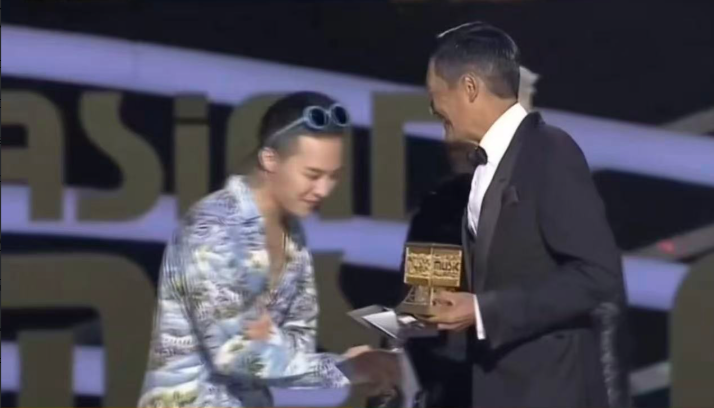这个临时增加的环节让喧闹的颁奖礼瞬间安静,十年前他给Bigbang颁奖,十年后亲自把奖杯交给权志龙,两人在台上拥抱时,仿佛港片黄金时代与kpop巅峰时代的对话。