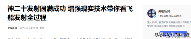 ( 信息来源:央视新闻 2025年04月24日 —— 神二十发射圆满成功 增强现实技术带你看飞船发射全过程 )