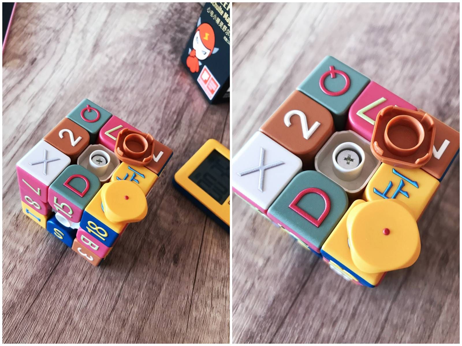跟着亲子互动指南解锁新玩法后,才发现魔方不止练专注。比如“九宫格记忆”,我们在基础玩法上发现了一个更好玩的玩法,我让她看魔方一个面10秒,我遮住这个面不让她看,问她这个面有几个数字?几个字母?都是什么?在什么位置?这个可真的太练脑了,刚开学几天,问她在学校的状况老师夸她上课听讲状态好多了。