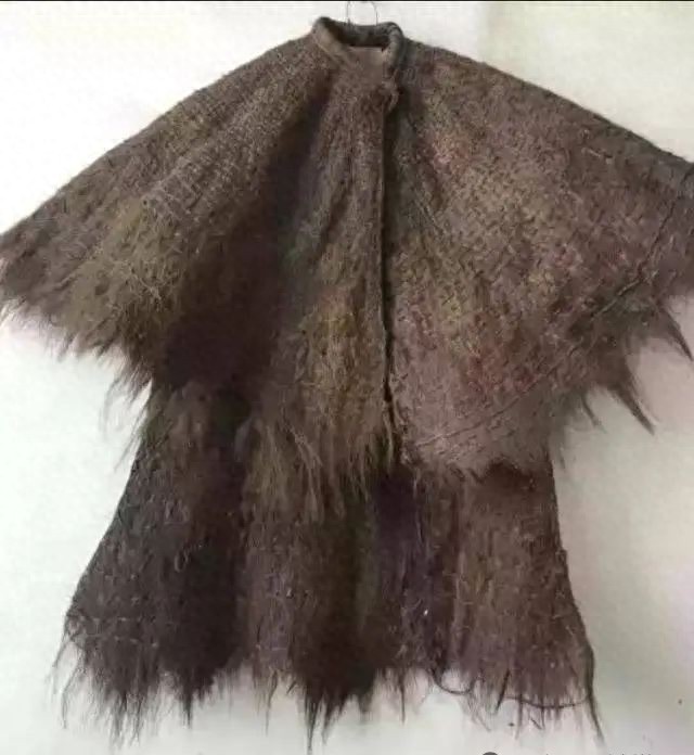 蓑衣,顾名思义,就是用蓑草或棕榈树片(丝)编织成的衣,南方通常用的棕片(棕丝)编织而成,蓑衣,上下身是连体的,有领口无袖子,衣长至小腿,前面开口,前端系有棕丝绳做成的系扣。蓑衣披起来,就像是一件斗篷或披风,上下身一体,系扣一扣,不容易脱落和滑落。