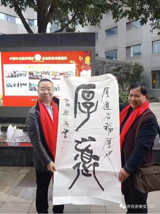 组织交流、寻根问祖活动,凝聚宗亲力量,让海内外许氏宗亲始终心系登封、心系嵩山。有感于登封许氏文化发展资源分散、无固定工作室的问题,2019 年他借着房子改造的契机,主动牵头推动登封许氏联谊会建设,向民政部门申请正规资质,逐一解决场地面积、双楼梯、50 名以上会员等审批要求,跑前跑后、尽心尽力,最终成功落地登封许氏文化专属工作室,让登封许氏宗亲与世界许氏宗亲联谊与寻根祭祖有了固定的发展阵地。多年来,他始终以书法为纽带,尤以篆书为特色,为宗亲活动题写标语、书写牌匾、创作作品,让墨香传递宗亲情谊,让文化凝聚血脉亲情。
