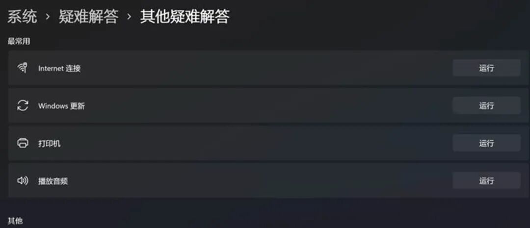 2.点击【其他疑难解答】,找到【Internet 连接】,点击右侧的【运行】;