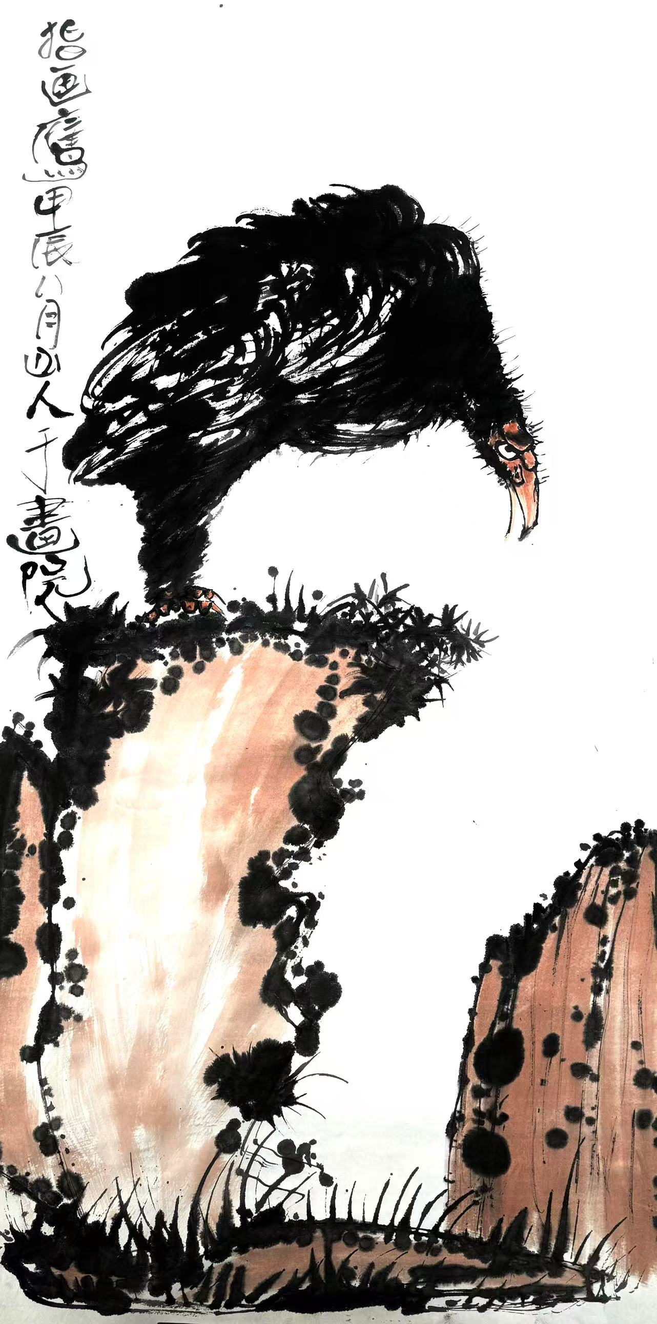 在中国当代画坛的喧嚣中,朱祖国像一只独栖高崖的苍鹰,远离尘嚣,与墨为伴。这位不善交际的画家,用三十年光阴只做一件事:画鹰。不是浮光掠影地画,而是将整个灵魂浸入墨色,与这种猛禽进行着跨越物种的精神对话。