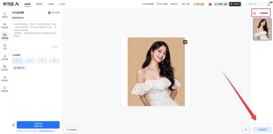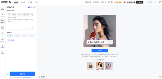 你先进入 AI 万能改图功能页面之后,就能看到上传图片的按钮,点击它把你想要修改的图片传上去,不管是产品图、人像照片还是设计稿,单张或者多张都可以,系统会自动识别图片的内容,不用你提前做任何抠图或者预处理的操作。