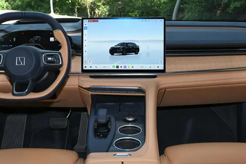动力方面,作为一款搭载全栈自研900V架构的新能源车型,它的动力数据确实很吸引人。综合最大功率达到680千瓦,官方宣称百公里加速2.83秒,续航CLTC工况最高能达到810公里,支持最高12C的充电倍率,官方说只要7分钟就能把电量从10%充到80%。刚坐进车里启动,电动车特有的静谧感立刻让人放松,没有传统发动机启动时的噪音和震动,整车给人一种非常纯净的状态。起步时动力输出非常平顺,没有丝毫迟滞,轻踩油门就能感觉到车辆轻快地开始加速,特别适合城市里走走停停的路况。动力响应非常灵敏,给人的感觉是车子随叫随到,这一点对日常驾驶体验影响很大,尤其在拥堵路段或者需要频繁变道时,非常省心。