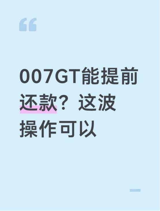 如果你准备买007GT,最快2年后就能提前还款,而且没有违约金