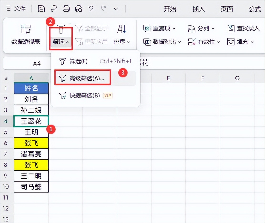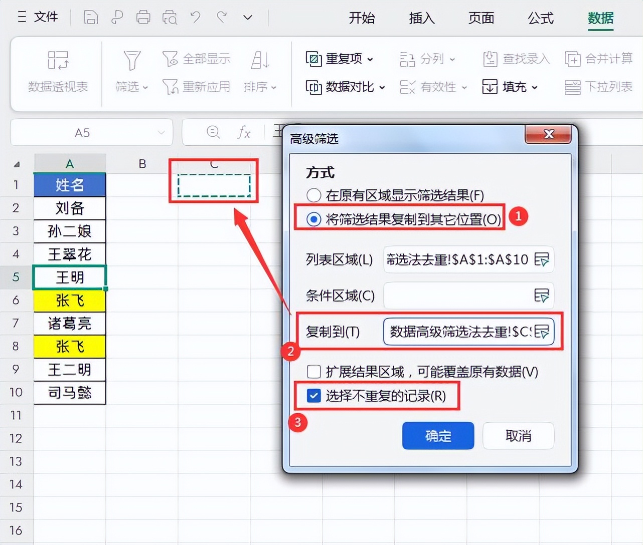 方法3:数据高级筛选法去重