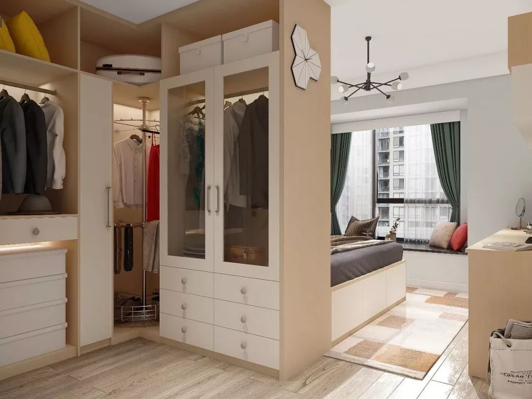卧室空间小,也是可以拥有属于自己的独立衣帽间。其实最小的独立衣帽间仅不到3m²,不需要太多的空间。