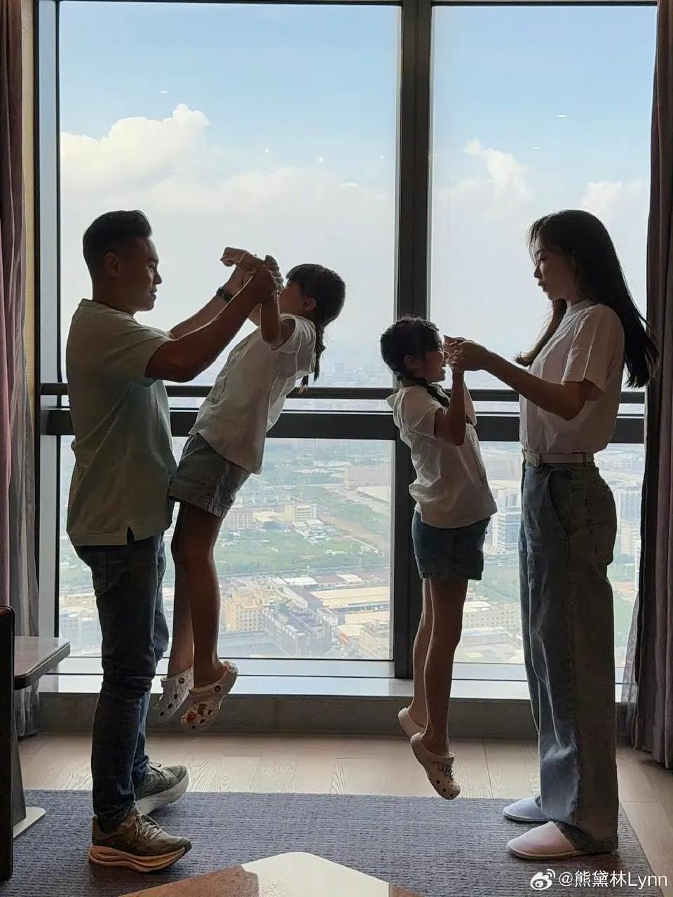 前几日,熊黛林庆祝结婚9周年纪念日,还晒出一家四口合照,夫妇二人和俩女儿一起开心玩耍,一家四口都是高个子,满屏大长腿既视感,身高太优越啦。