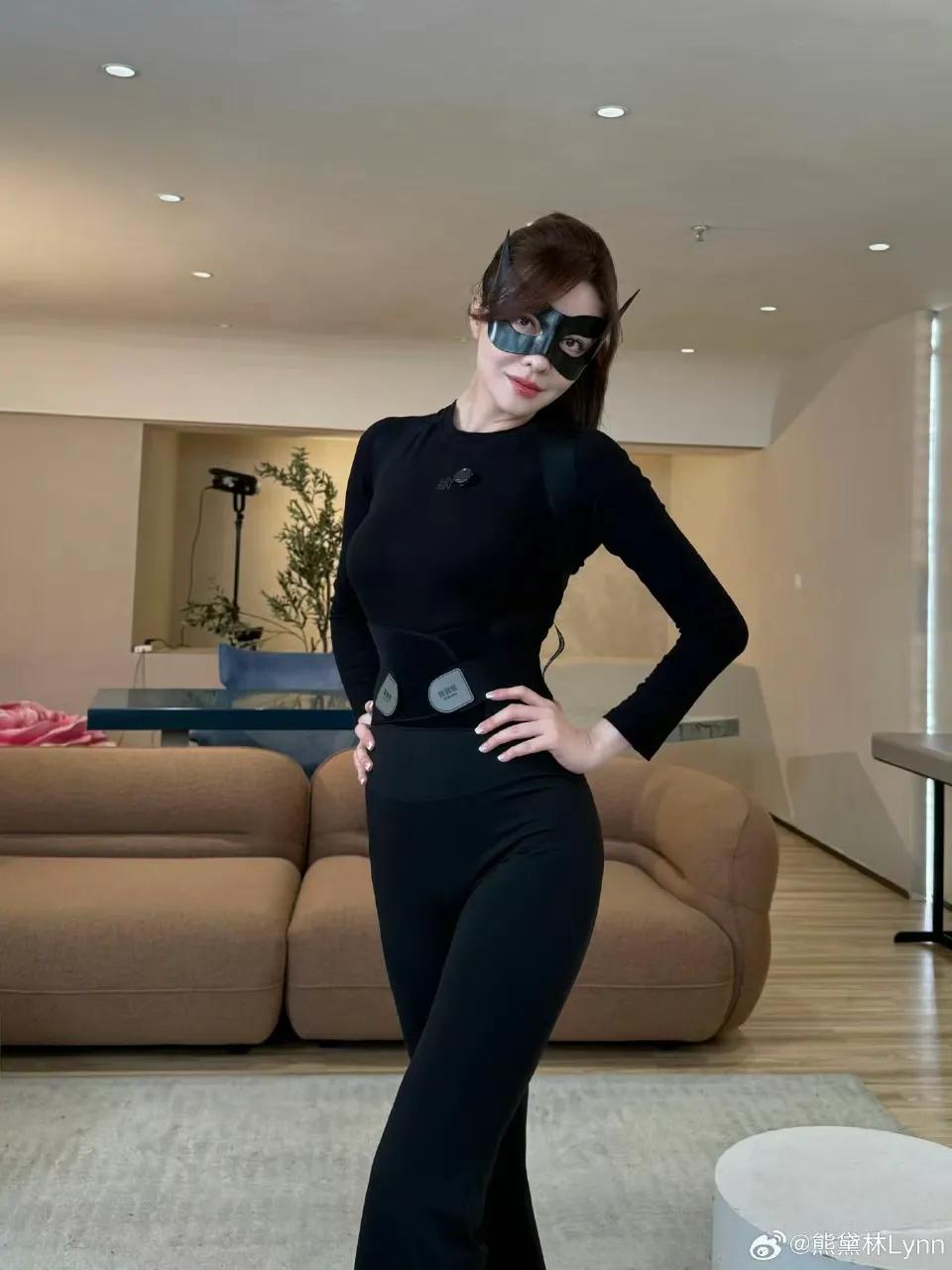 照片中,只见熊黛林身穿黑色紧身衣,戴着黑色狐狸面具cos猫女,尽显高挑苗条好身材。不得不说熊黛林的身材是真的很好呀,身材玲珑有致,曲线明显,关键是腿还长,简直让人羡慕不已,不愧是名模呢。