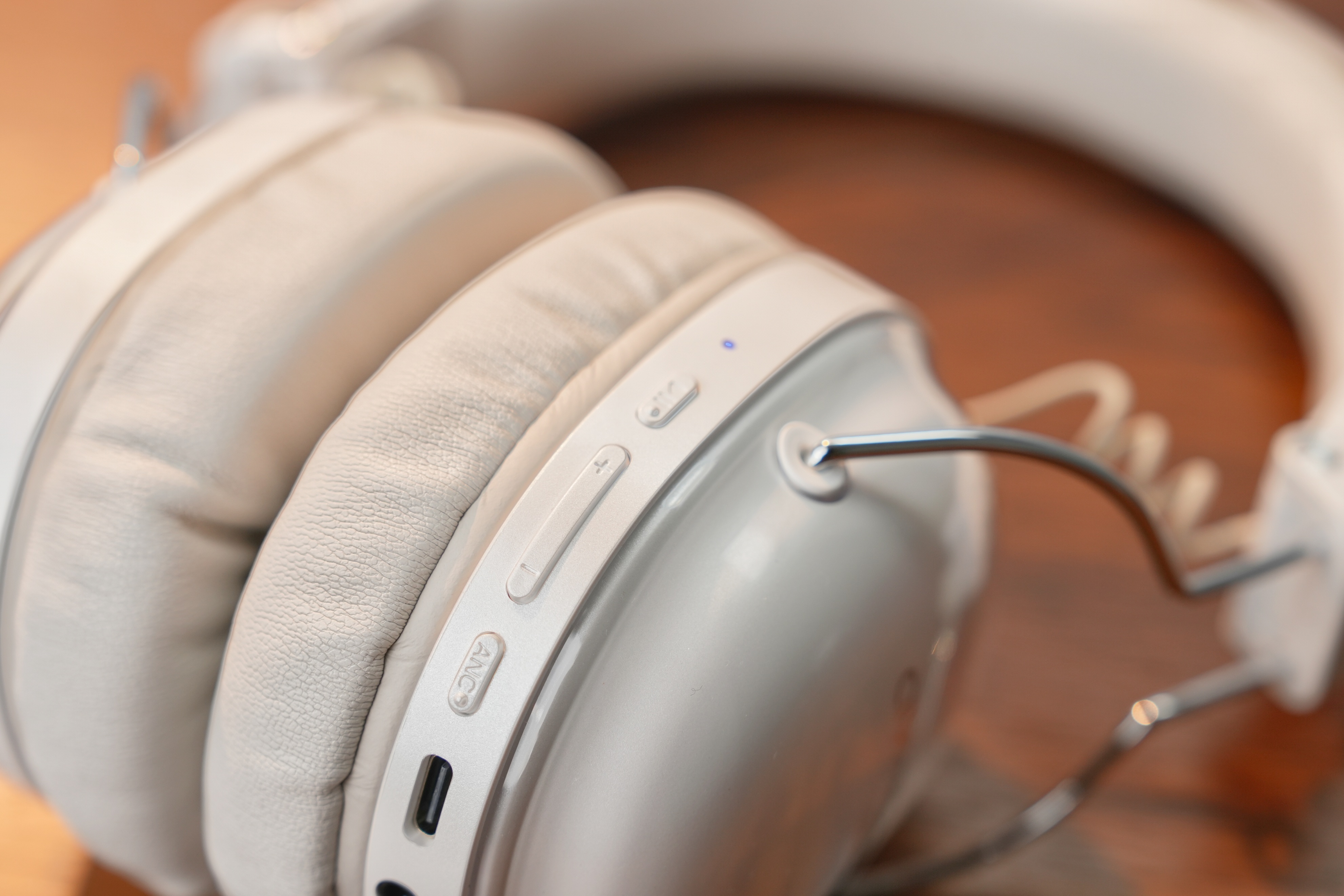 当我初见瓷音未来Mars Max头戴式降噪耳机后,其月牙白色的机身搭配高透光亚克力外壳,在光线的折射下散发出珍珠漆特有的温润光泽,从而简约中透出高级感。加之,头梁采用超轻铝合金框架设计,外嵌式可调节支臂不仅稳固,而且旋转时阻尼感恰到好处,同时折叠收纳后体积小巧。因此,通勤中时塞进背包里可谓是毫无压力。
