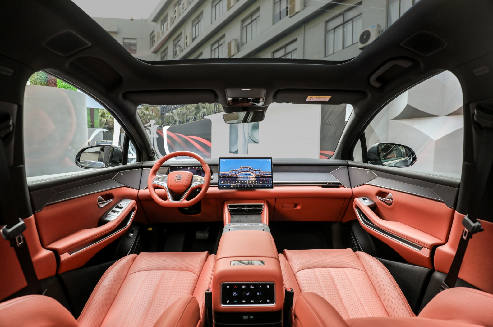 从龙到凤、从瓷到竹,汉L唐L以中国文化刻画外观,并将国潮质感全面融入内饰。新车内饰设计灵感,整体都源于中国传统建筑中的庑殿顶,既取其“屋脊”之型,又取其“脊梁”之意,以“天人合一”为理念,将建筑与车辆的物理空间概念创造性贯通,打造出最适合中国用户的旗舰级座舱空间,称之为“庑殿之下,大雅之堂”。