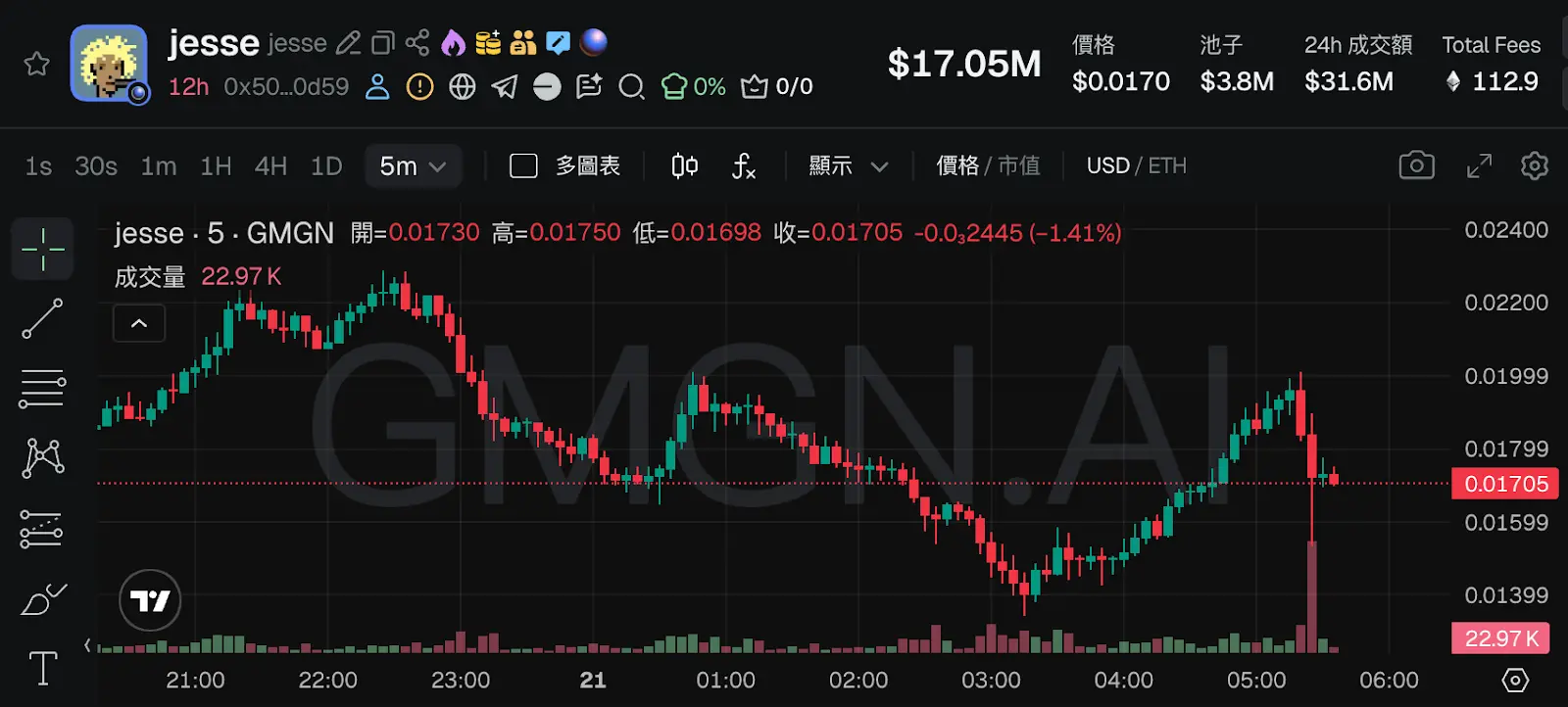 目前 jesse 价格 0.01705 美元,市值 1705 万美元。