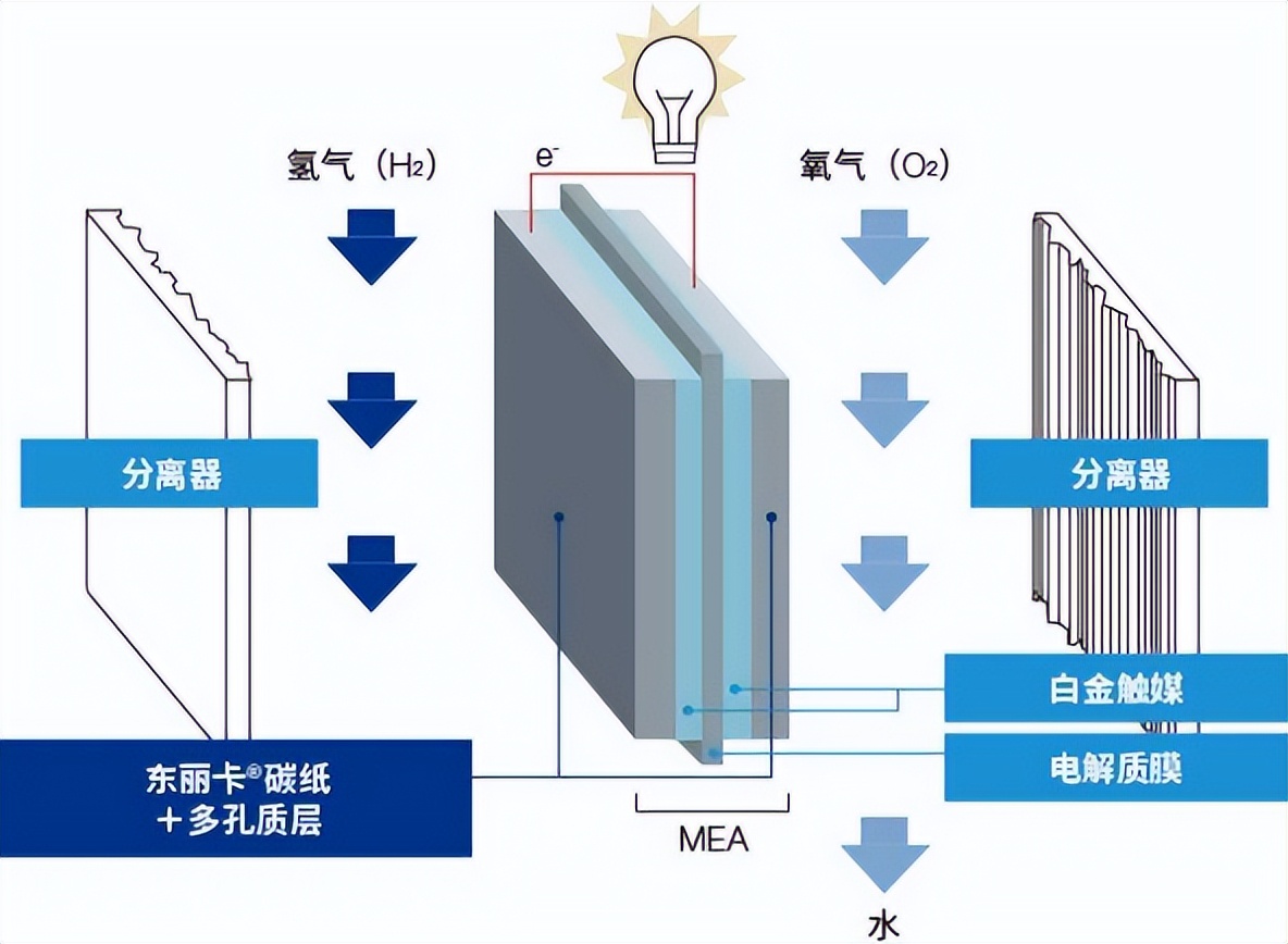 燃料电池的核心膜电极(Member Electrode Assembly/MEA)由气体扩散层(Gas Diffusion Layer/GDL)、催化剂(Catalyst)、交换膜(Exchange Membrane)关键部件组成。