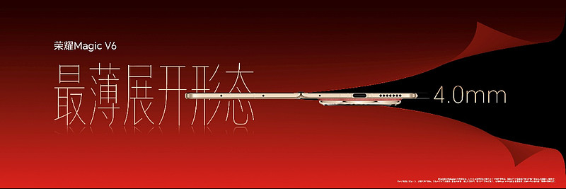 自荣耀Magic V2引领折叠屏进入“毫米时代”以来,轻薄就成为了荣耀折叠的基因。此次荣耀Magic V6折叠形态下薄至8.75毫米,轻至219g,展开状态下的厚度只有4.0毫米,依旧是“最轻薄折叠屏”代名词。