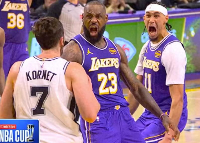 老詹球迷破防!北京时间 12 月 11 日,NBA 杯八强战爆出冷门,湖人 119-132 不敌马刺,连续两届无缘杯赛半决赛,41 岁的詹姆斯错失冲击杯赛第二冠的机会。尽管他全场贡献 19 分 15 篮板 8 助攻 3 盖帽的准三双数据,篮板数创下赛季新高,还上演了劲爆隔扣科内特、追身大帽福克斯的名场面,但仍难阻球队失利,赛后他的淡然回应引发热议!