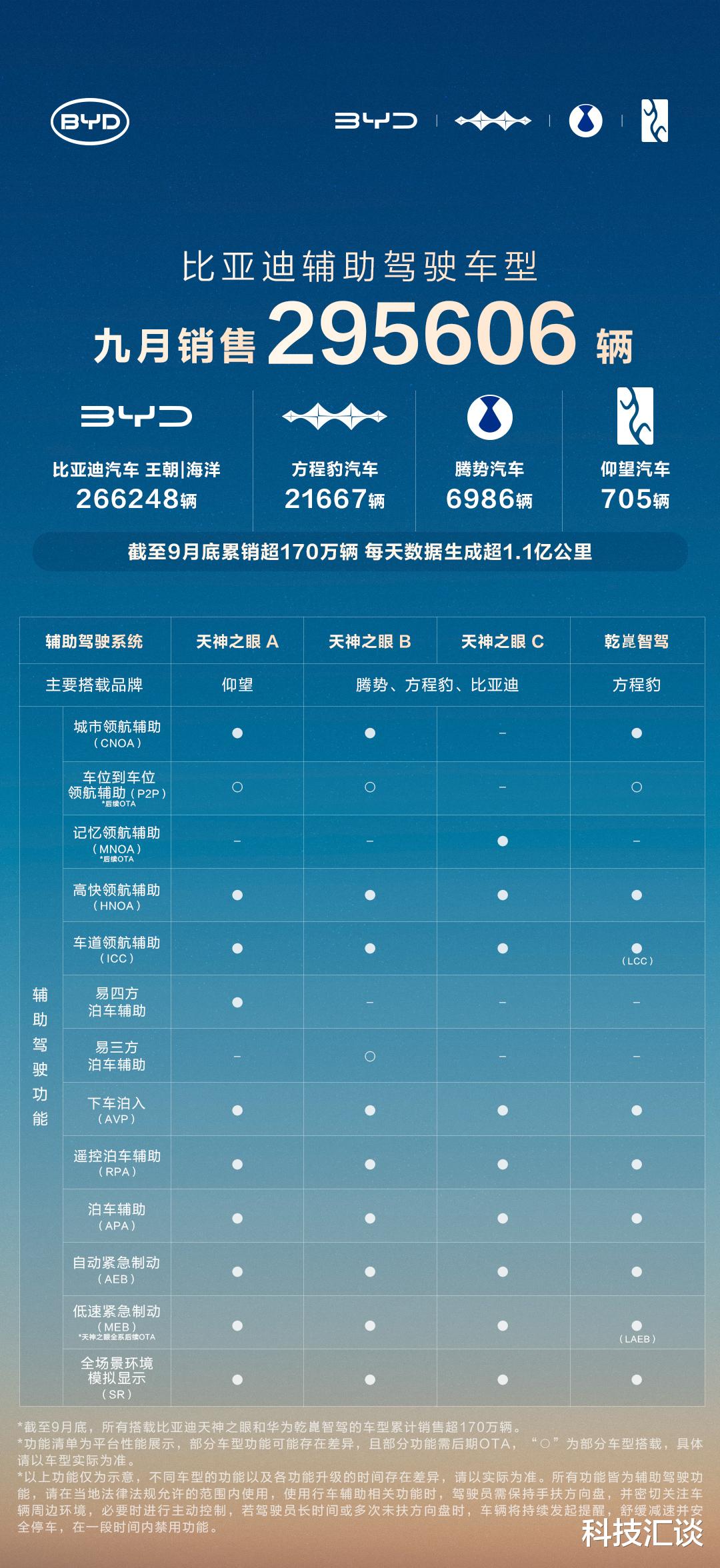 比亚迪1-9月销量超326万稳居榜首,天神之眼车型累计超170万辆