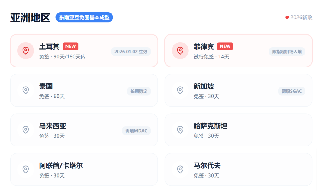 随着2026年初多国签证新政陆续落地,中国普通护照的出行便利度再次提升。土耳其、菲律宾、巴西等热门目的地相继对中国公民开