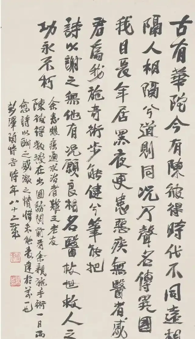 从那一刻起,沉睡的名字被叫醒。报纸、电视接连报道,求字访帖的人循线而来,有人翻山越岭,只为看他一眼。省里领导也专程登门,握手寒暄,问他笔墨所从。数年后,他第一次个人展在北京中国美术馆举行:林散之作序,启功题签,赵朴初、李可染等大家到场观摩。那一日灯光如昼,人潮如海,展厅里最亮的却是纸上那股清气与铁气。展览一锤定音,陶博吾正式立于书坛高处,而此时他已近九旬。人生不过百年,九旬已属峰顶;若缺少这迟来的聚光,他或许真会被时代浪头悄然卷走,只剩一段无人知晓的苦修史。