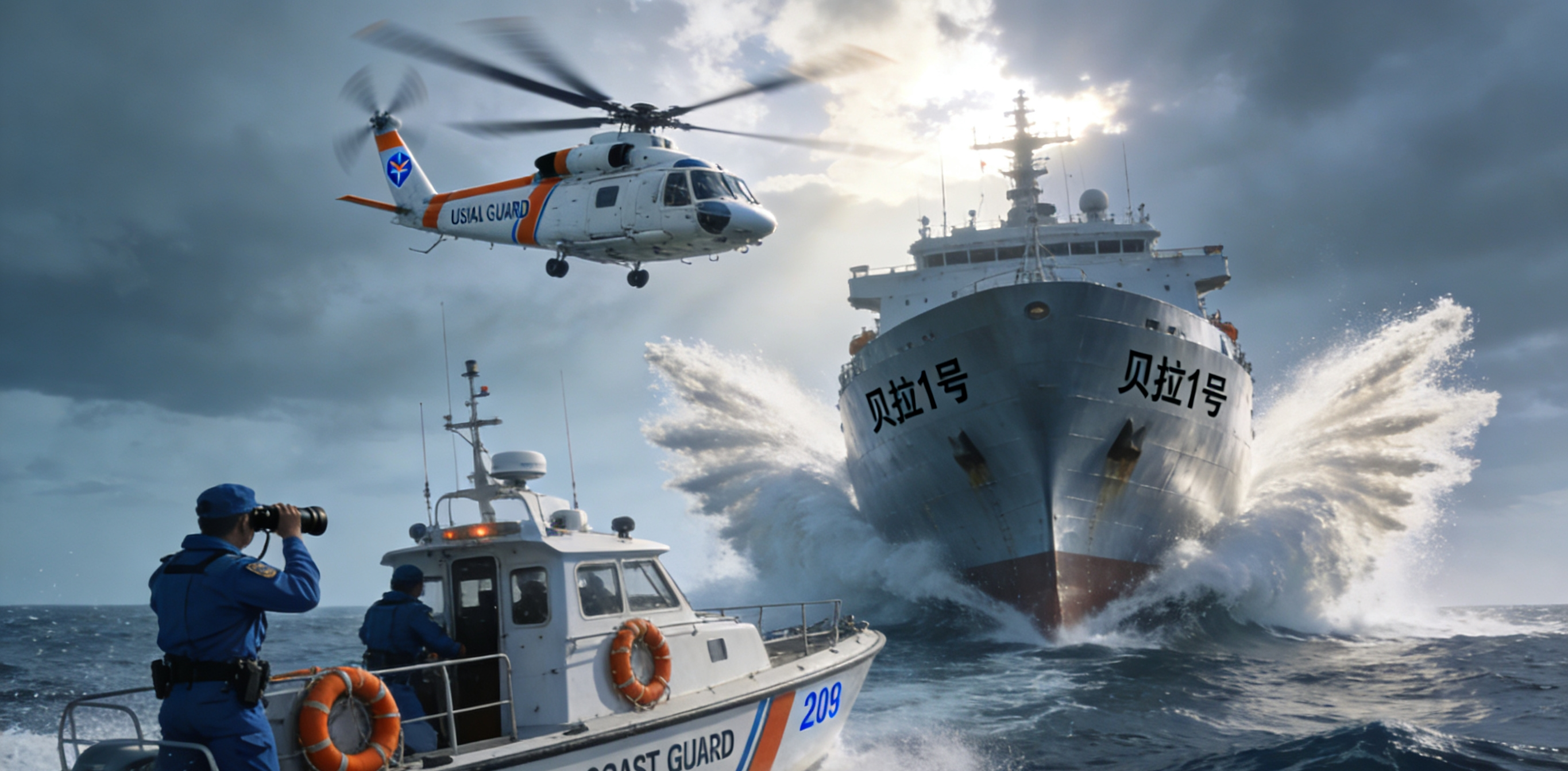 今天咱们来聊个劲爆的国际大事——就在12月21日,美国海岸警卫队又在委内瑞拉附近的国际水域,追着一艘叫“贝拉1号”的油轮满海跑,最后硬是给扣了下来!