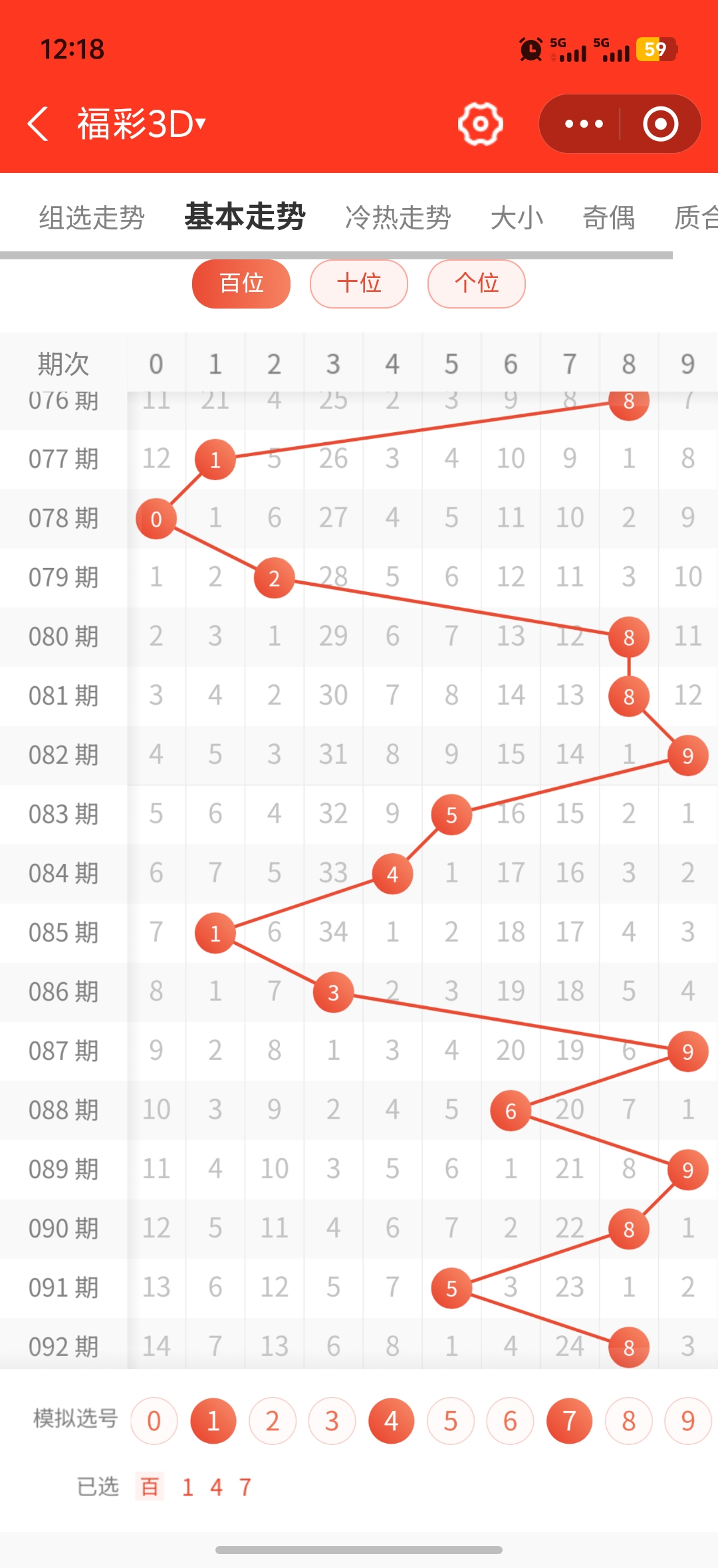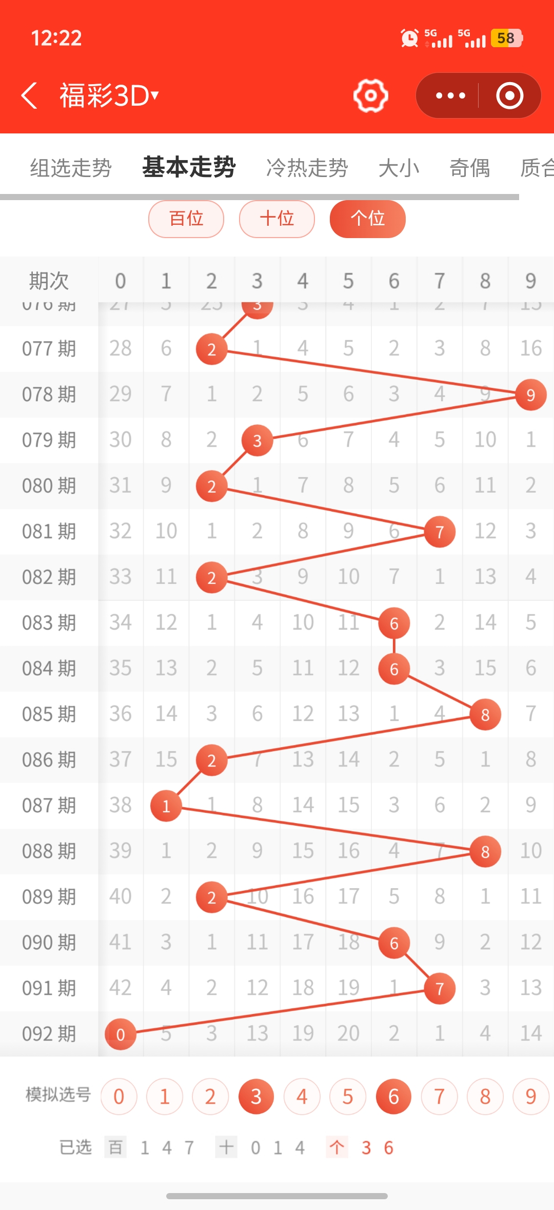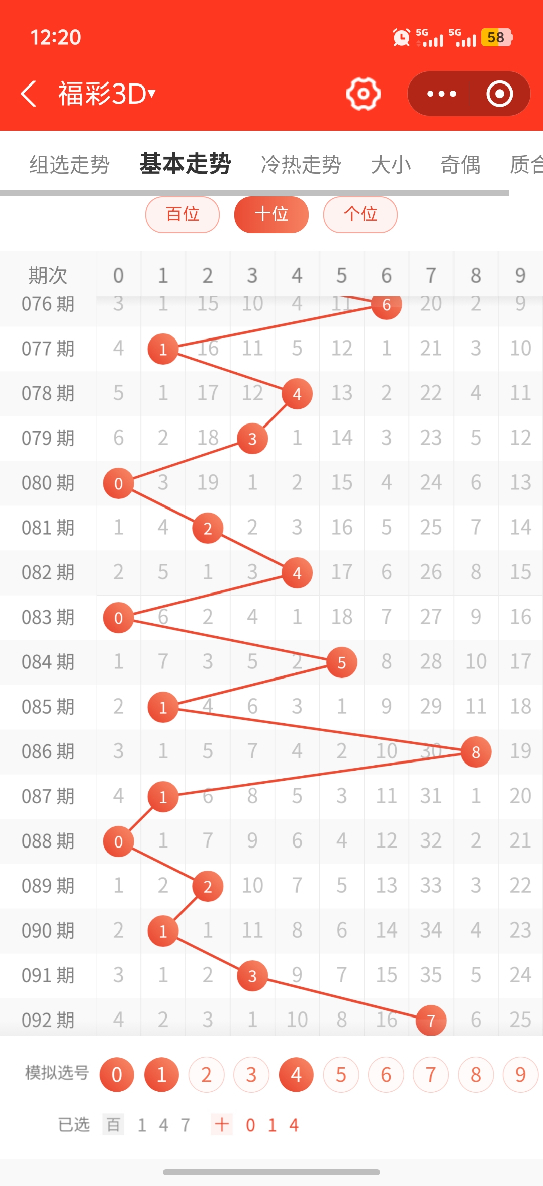 十位走势:014。主要看好小号0、1开出,4号仅做防守备用。