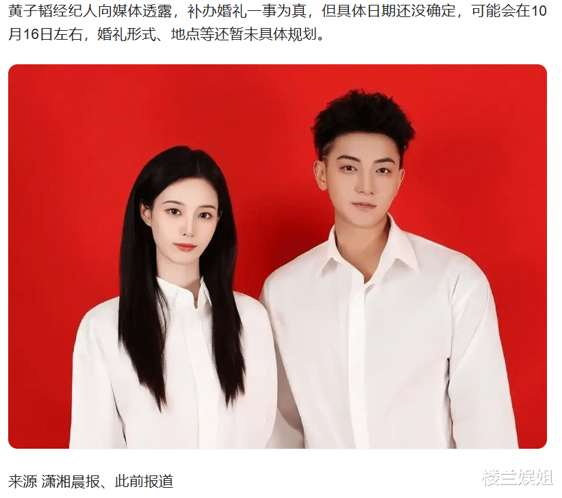 此前,经纪人就向媒体透露,黄子韬可能在10月16日补办婚礼,近日这则消息再次通过一众网友得到证实。