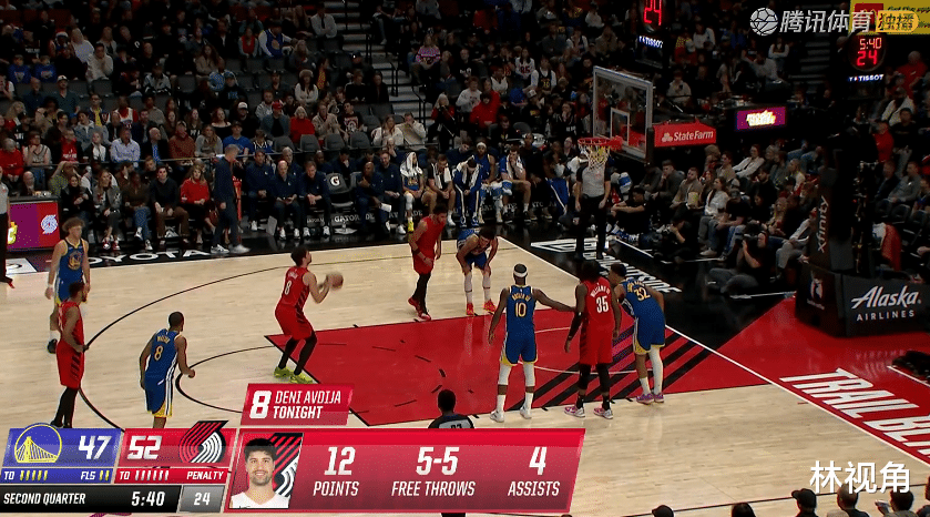 夏普两罚两中,一点机会不给,开拓者领先到5分,勇士陷入绝境了。