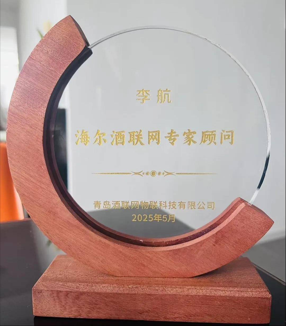 在海尔科创生态园,学员们深度参访了卡奥斯工业互联网平台与智慧生活展厅,了解海尔在物联网时代的生态布局。期间,海尔酒联网授予李航院长“专家顾问”称号并颁发荣誉奖杯,标志着双方在葡萄酒教育智能化领域的合作进一步深化。