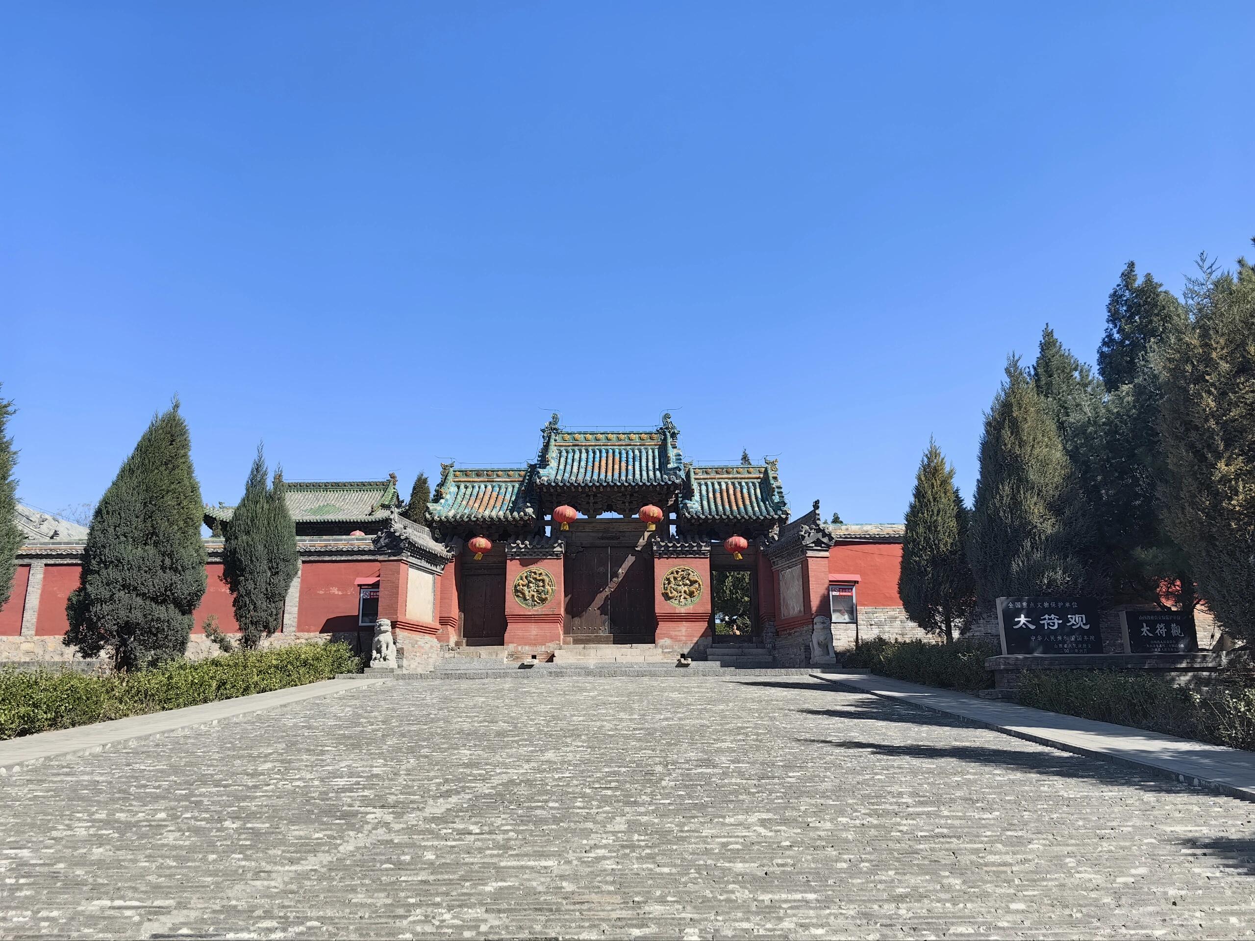 杏花村的晨雾还未散尽时,太符观的飞檐已刺破云层。这座藏在山西汾阳乡间的古老道观,没有名山大川的衬托,却以八百余年的沉静姿态,将金代建筑的风骨牢牢扎根在黄土之上。穿过青石板铺就的村道,远远望见山门的悬山顶在杨树梢头若隐若现,檐角铁马随风轻晃,仿佛在叩响通往另一个时空的门环。