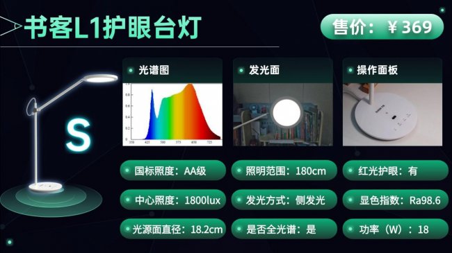 护眼台灯排行榜第七名:书客L1(推荐指数:⭐⭐⭐⭐)
