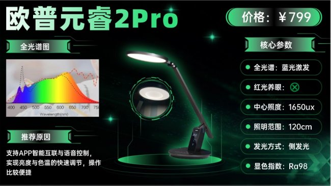 护眼台灯排行榜第十名:欧普元睿2Pro(推荐指数:⭐⭐⭐)