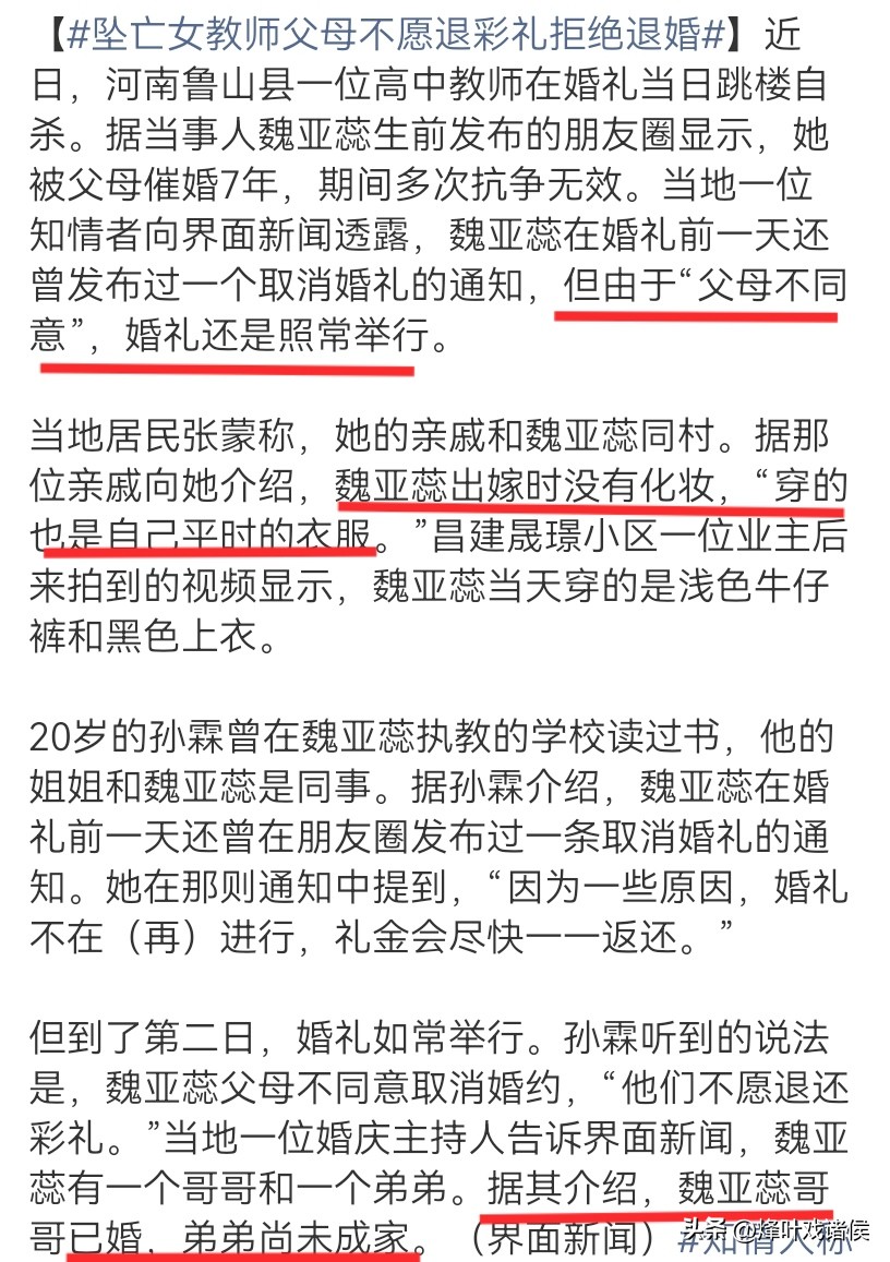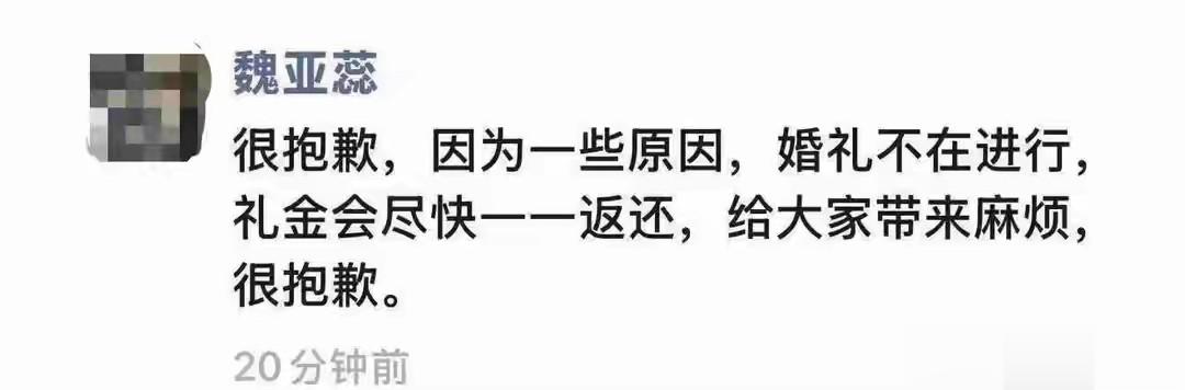 五条后续第一条,新娘根本就不想结婚,在结婚前一天还发信息说要取消婚礼,可惜被父母无情的拒绝了,因为父母不想退还彩礼。