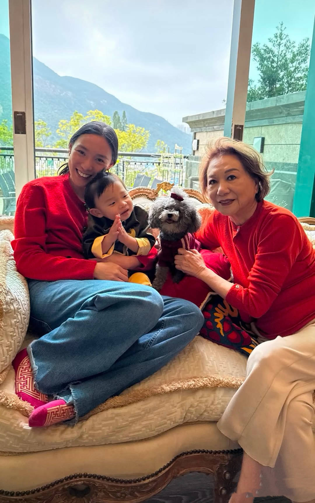 李美慧嫁给曾文豪也有七八年了,早就得到了曾老太的认可。过年的时候,她也会抱着儿子和曾老太一起合照。曾老太穿红色毛衣,画着精致的妆,年纪大了也很体面。