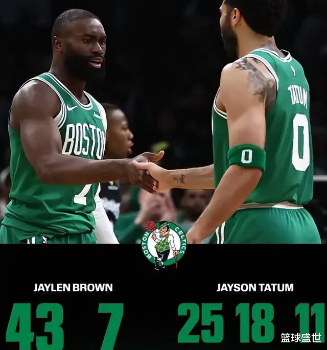 在塔图姆之后,本赛季打出MVP级别的杰伦·布朗依旧暴走,全场出战37分钟,29投17中,三分球10中4,高效砍下43分3篮板7助攻。个人本赛季第7次单场砍下40+,高居东部第一,同时一举刷新本赛季个人新高。