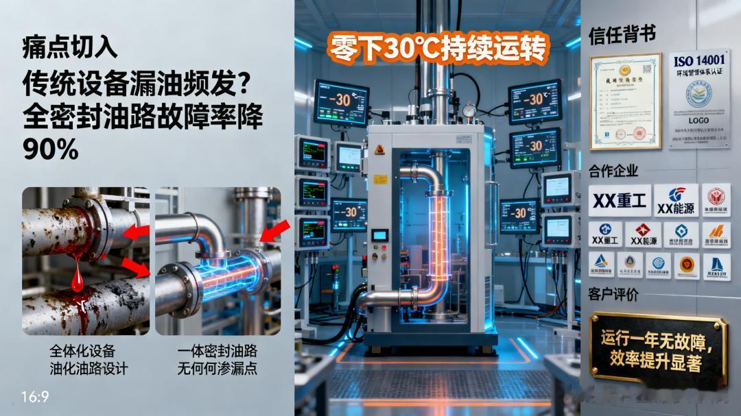 将晦涩参数转化为感知价值:痛点切入(“传统设备漏油频发?全密封油路故障率降90%”);场景具象化(极端环境作业视频配文“零下30℃持续运转”);信任背书(展示ISO认证、合作企业名录及客户评价)。