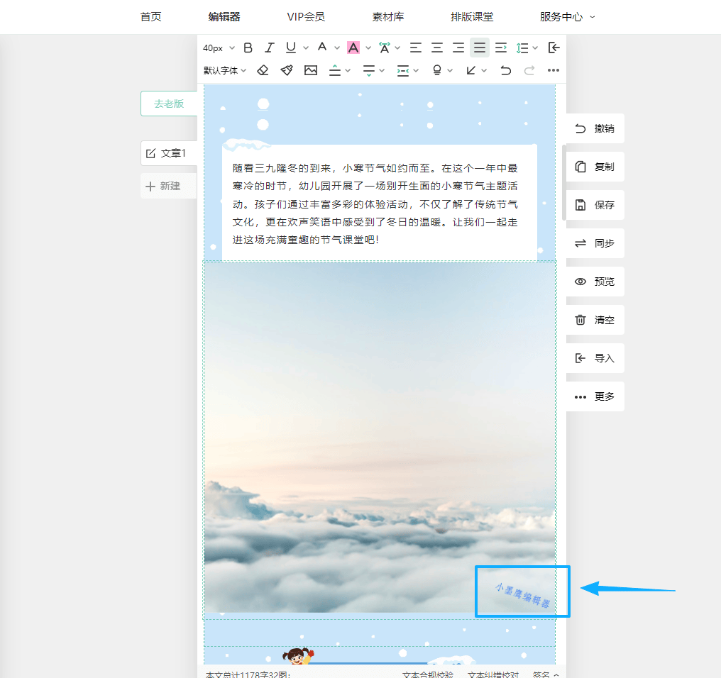 最近开始做公众号,朋友提醒我说,图片最好加上自己的水印,不然容易被别人直接拿走用。我一听觉得有道理,就开始研究怎么在小寒的公众号编辑器里加水印。