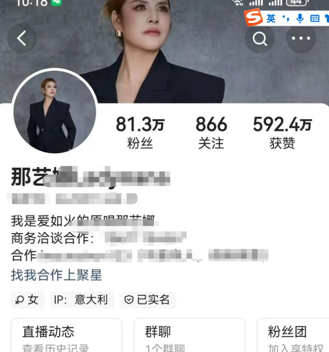公开资料显示,那艺娜本名翟革英,1967年7月17日出生于湖北荆门钟祥,女歌手、短视频博主。2022年11月发行代表作《爱如火》,该曲曾引发全网翻唱热潮,并长期登上音乐平台榜单。