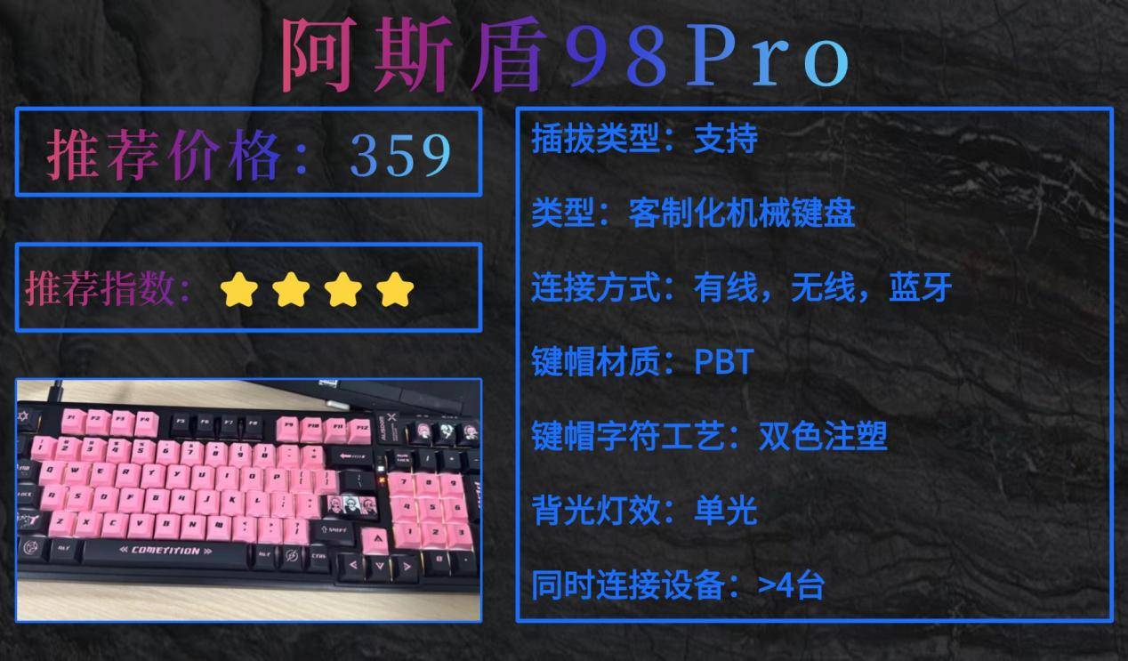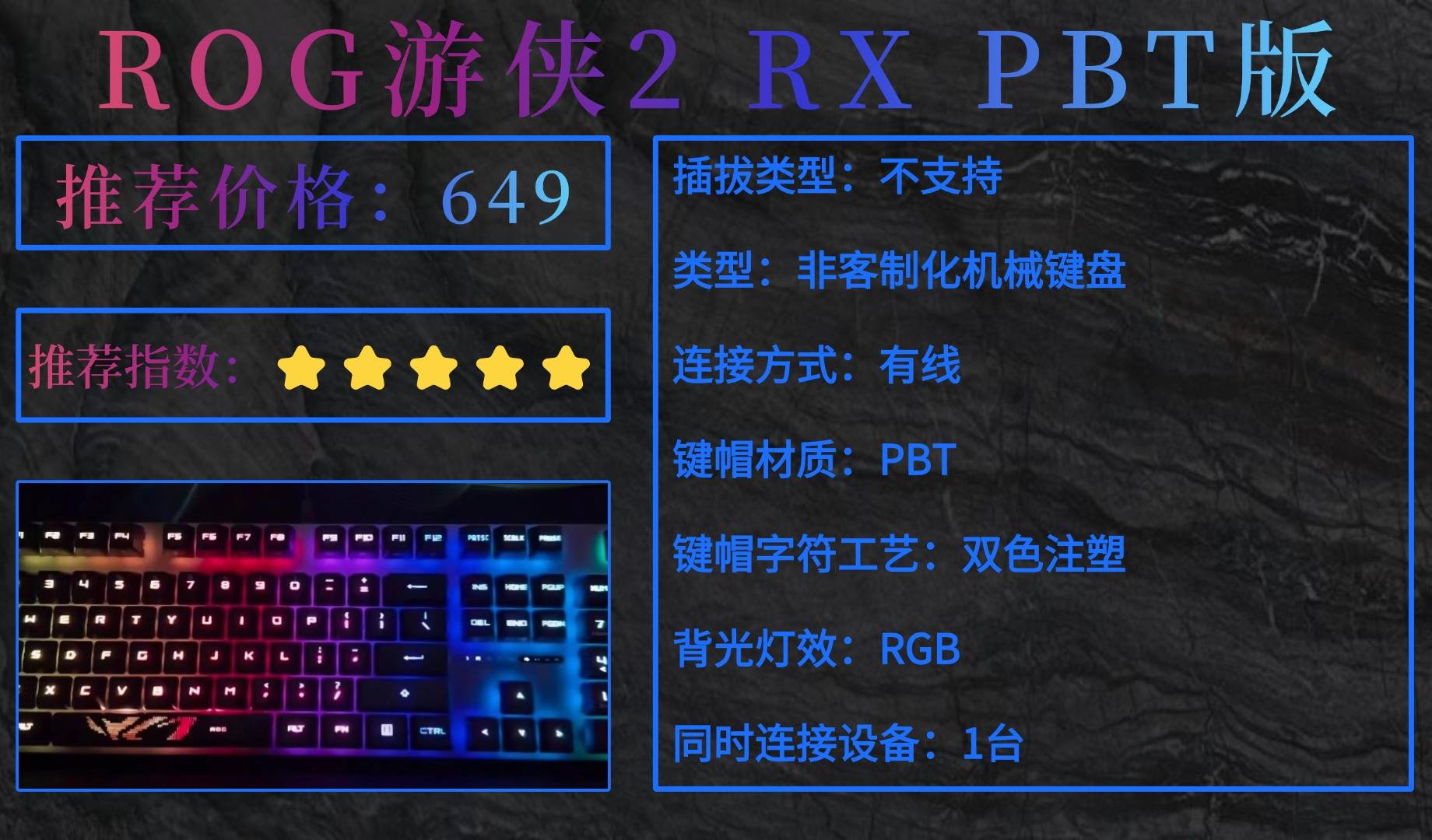 配置及体验:这款键盘在配置上采用RX光学红轴,利用光束触发实现0.2ms超低延迟,响应速度比传统机械轴快约3倍,手感顺滑且敲击精准。键帽为PBT双色注塑工艺,抗打油耐磨不褪色,搭配IP57级防水防尘设计,即使液体泼溅也能稳定使用。功能方面支持全键无冲,最高可识别26键输入,适合复杂操作。配备Aura Sync RGB灯效,支持1680万色自定义,并与游戏场景联动。多功能控制模块集成多媒体滚轮与直播快捷键,提升操作效率。人体工学上,内置消音硅胶垫降低噪音,磁吸掌托和多档倾角设计缓解手腕疲劳。问题是降价比较频繁,价格变动大。