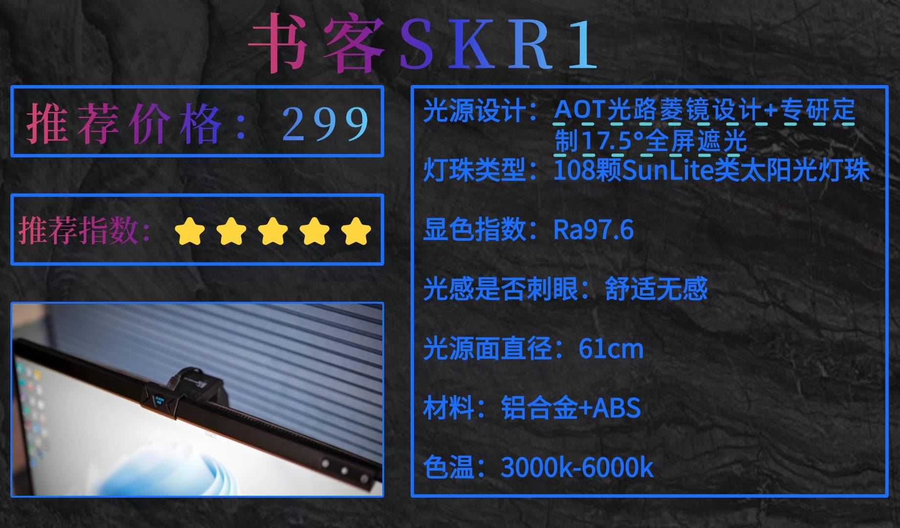 一、精选推荐屏幕挂灯精选——书客SKR1