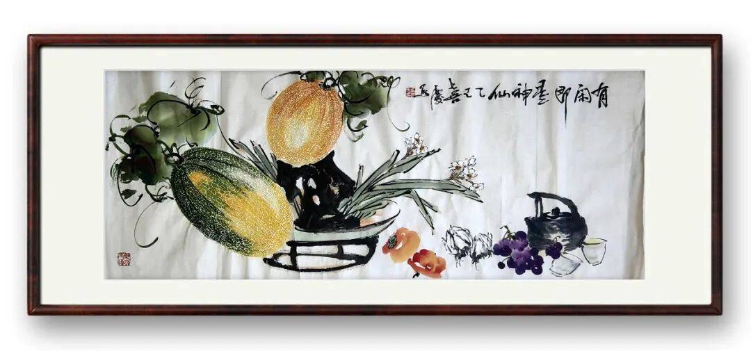 从荣宝斋的展出到中央档案馆的永久收藏,从央视栏目的专访到国际展会的屡获殊荣,齐喜庆先生的作品获得业界与大众的双重认可,根源在于他守住了传统的根,打开了创新的门。他以笔墨为媒,在瓜果题材中书写对生活的热爱、对时代的感悟,为当代写意花鸟艺术的传承与发展,提供了极具价值的实践范本,这份在坚守与突破中求索的艺术精神,远比作品本身更具感染力。