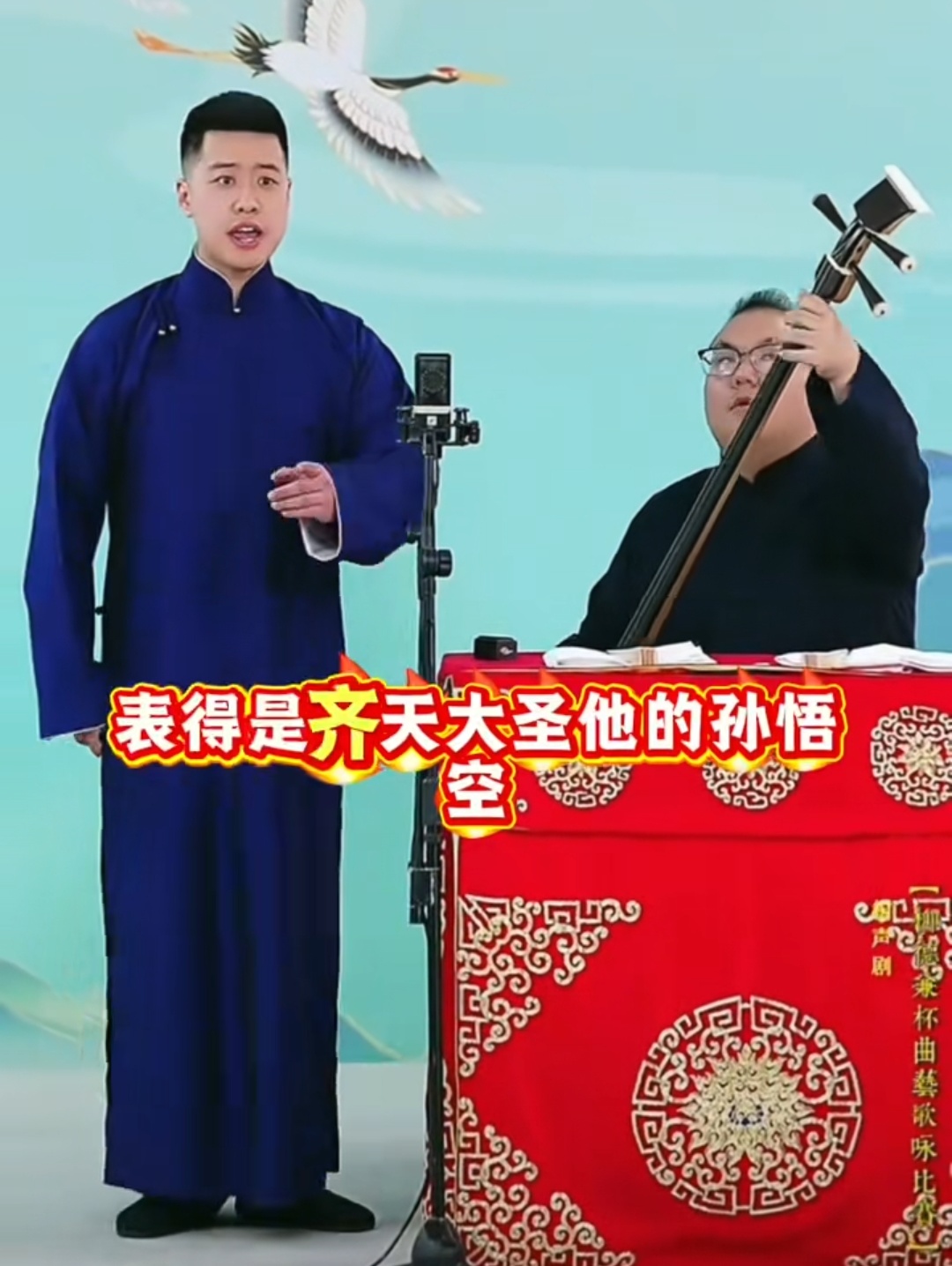 何沄伟唱的第一首是《天涯歌女》,这首歌都快上百年了,跟如今的“流行”就不沾边,但何沄伟说这是“溜溜嗓子”。第二首则是二人转《送情郎》,恐怕比第一首的年头还久,不过何沄伟把这叫“混搭”。第三首更有意思,歌曲《盼情郎》,直接打曹云金手背上了,何沄伟说这是演出散场时听来的,每周听两三次,自己就会仨。经他这么一“歪唱”、“歪解”,喜剧效果不就来了嘛!
