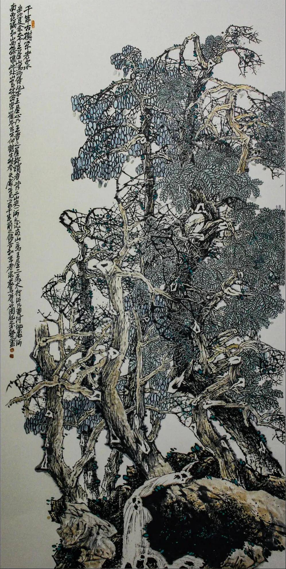 但巨幅绘画的阵地,不可能永远由人物画、山水画独占,主题性花鸟画也正是在此背景下应运而生。它凭借构图饱满、物体穿插有致、布白疏密得当的特点,以及气魄宏大、时代气息浓厚的绘画面貌,赢得了世人的广泛赞扬。可以说,主题性花鸟画的诞生是时代与环境的共同需求,既填补了传统花鸟画的短板,更是真正意义上的“应运而生”。