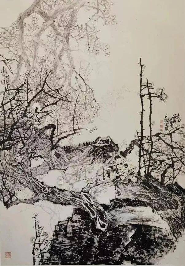 尤其是改革开放以后,中国经济实现高度发展,曾经虚弱的东方巨人,逐渐成长为东方强人,国力之强盛、发展之迅猛,已能与世界任何国家比肩。祖国建设日新月异,高楼大厦拔地而起,车站码头星罗棋布,各种厅堂场馆气魄宏伟;人们的居住环境也发生变化,过去的堂屋厢房格局逐渐被套房取代。这种环境改变,迫切需要与之适配的绘画形式——大尺寸的人物画、山水画在这方面具备天然优势,而传统花鸟画依赖“逸笔草草”的创作方式,面对新需求时显得力不从心。