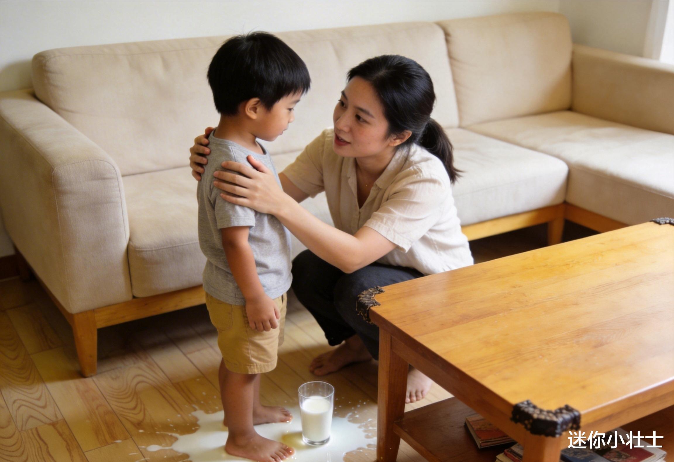 比如,当孩子打翻牛奶时,你可以蹲下来,看着他的眼睛,温和而坚定地说:“宝贝,你把牛奶打翻了,这会让地面变脏,妈妈需要花时间清理。而且,牛奶洒了就没有了,我们可能就没办法喝到美味的牛奶了。”通过这样的表达,你既没有压抑自己的情绪,又让孩子明白了行为的后果。孩子知道,打翻牛奶会让妈妈辛苦,还会失去喝牛奶的机会,下次他就会更加小心。