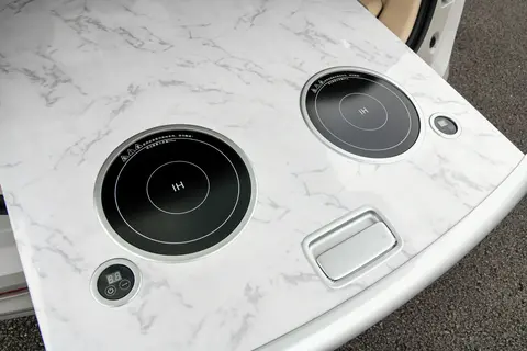 后备箱里藏着的 “户外餐厨” 彻底征服了我老婆。抽拉式双电磁炉太巧妙了,需要时拉出来就能煎蛋煮面,不用时收起来完全不占空间。前排还有即热式热水器,插瓶矿泉水就能秒出热水,冲奶粉、泡咖啡随时满足。