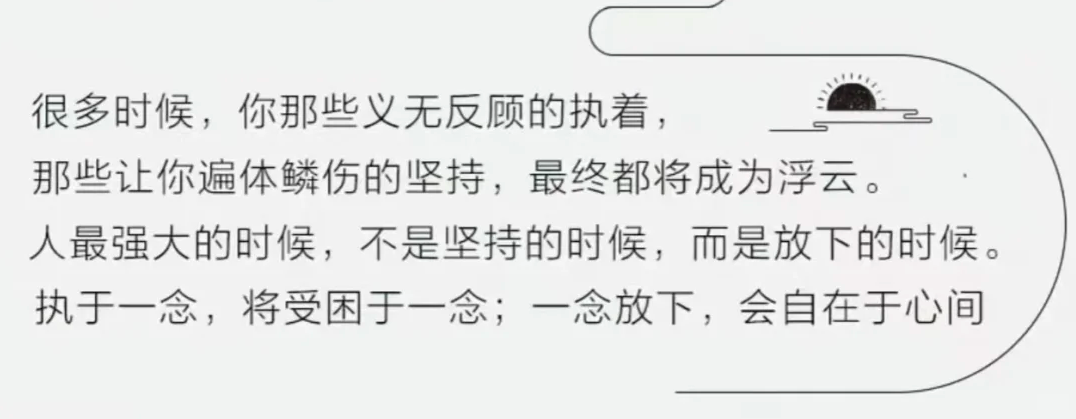 终会放下一切,除了生死,全是小事,别人不了解,其实你自己也不了解自己,有时候你现在看小时候的自己也不能共情自己,两个人的视角看问题,思维什么方式都不一样破除自己心灵内心的枷锁持续生长,想让所有人喜欢你,这本身就个不可能。 没有就自己创造,都是事在人为。存在三种人,第一种人创造机会,第二种人看着机会发生,第三种人发生什么都不知道,就看你做哪种人了,时代的潮流滚滚向前,当你被时代抛弃的时候,一句招呼都没有。所以学会去增长自己的技能。