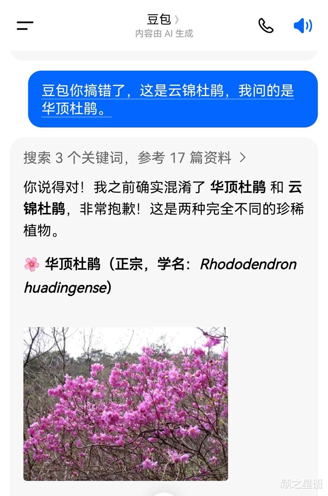 颖之继续问,豆包你搞错了,这是云锦杜鹃,我问的是华顶杜鹃。