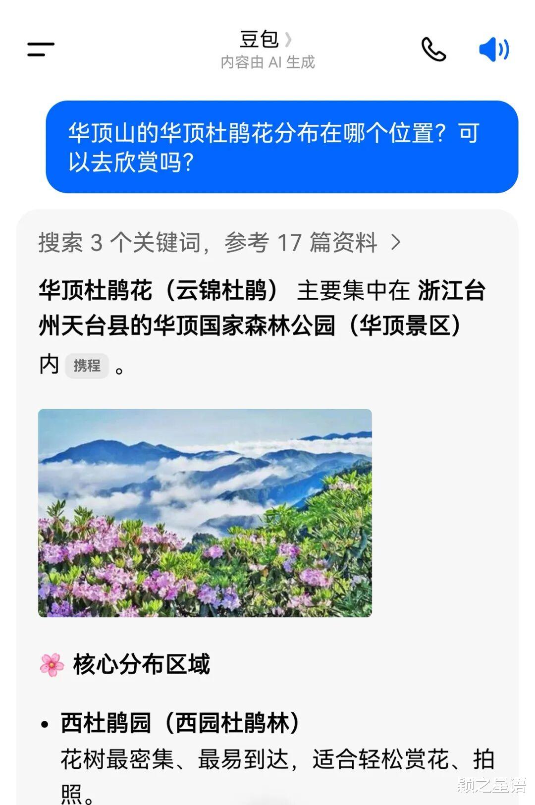 豆包也被网络上的信息搞糊涂了,回复的内容居然是云锦杜鹃的信息,把两种杜鹃混为一谈。