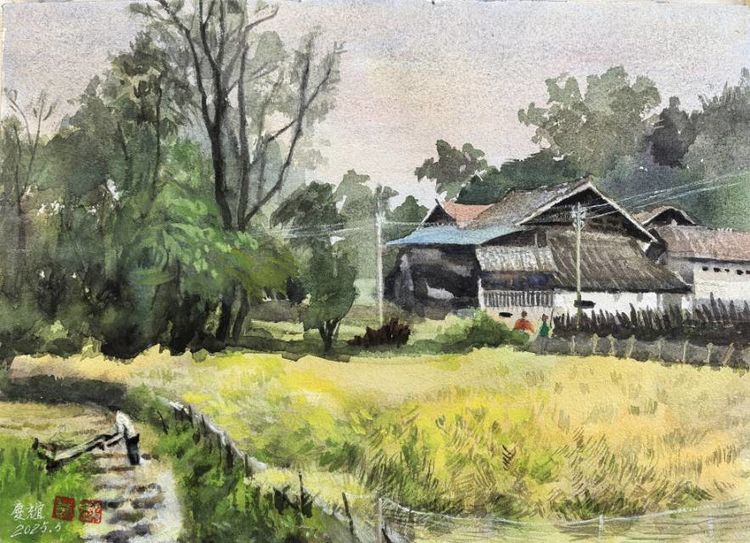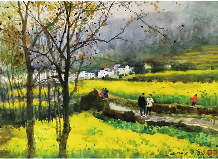 《婺源春色》 水彩画 38X53cm 2024年